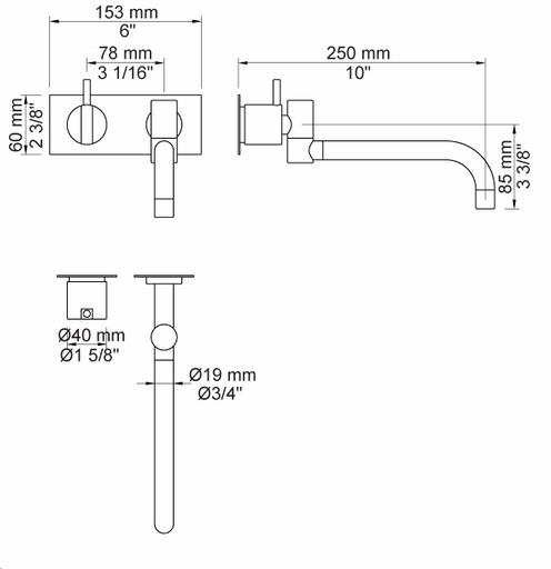 Wall Mount: VOLA One-Handle Mixer, 10" Double Swivel Spout and Plate (1.3 gpm) - 132