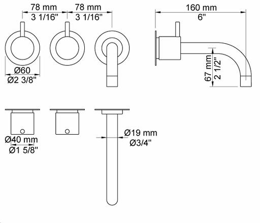 Wall Mount: VOLA Two-Handle Wall Mounted Mixer with 6" Spout to Right and Rosette (1.3 gpm) - 611