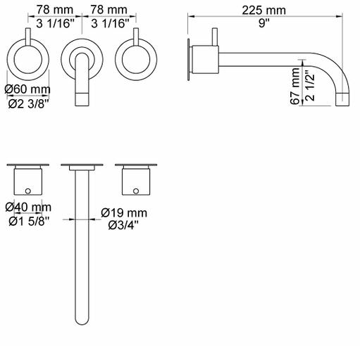 Wall Mount: VOLA Two-Handle Basin Mixer, 9" Spout in Center and Rosette (1.3 gpm) - 1521
